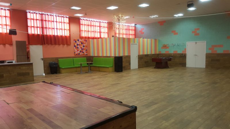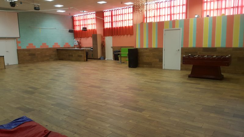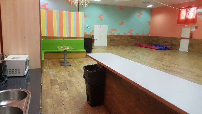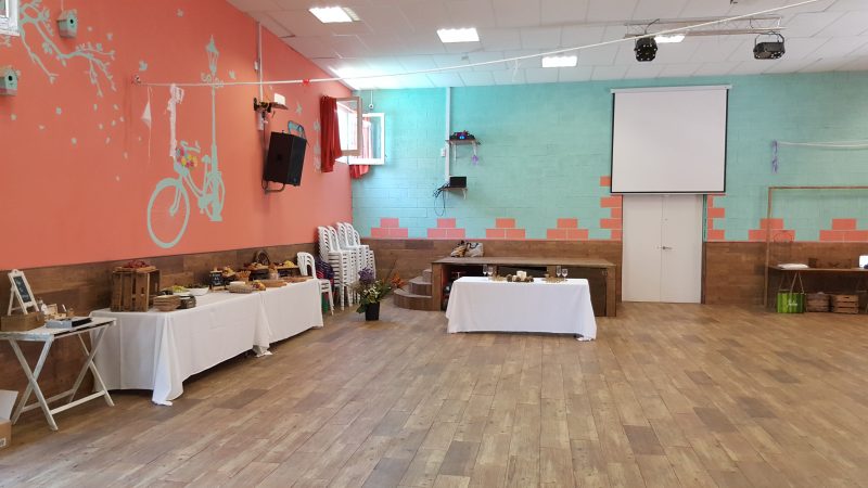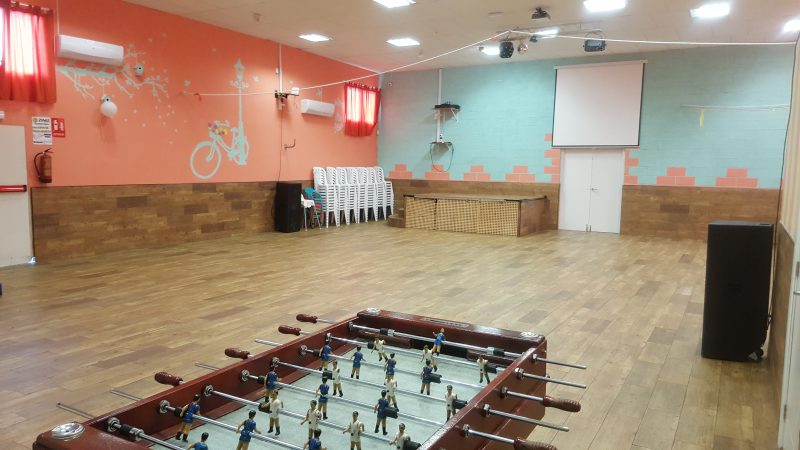 - Zona amb sofàs, projectors 2×2 mts amb reproductor USB i cable HDMI per portàtil i mòbil.