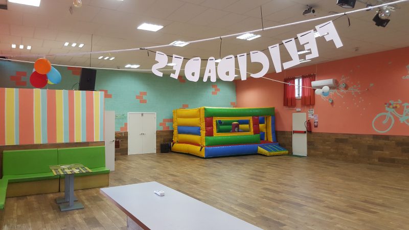 - Disposa d’una estructura de castell inflable de 4 x 5 mts i un mini estadi de futbol.